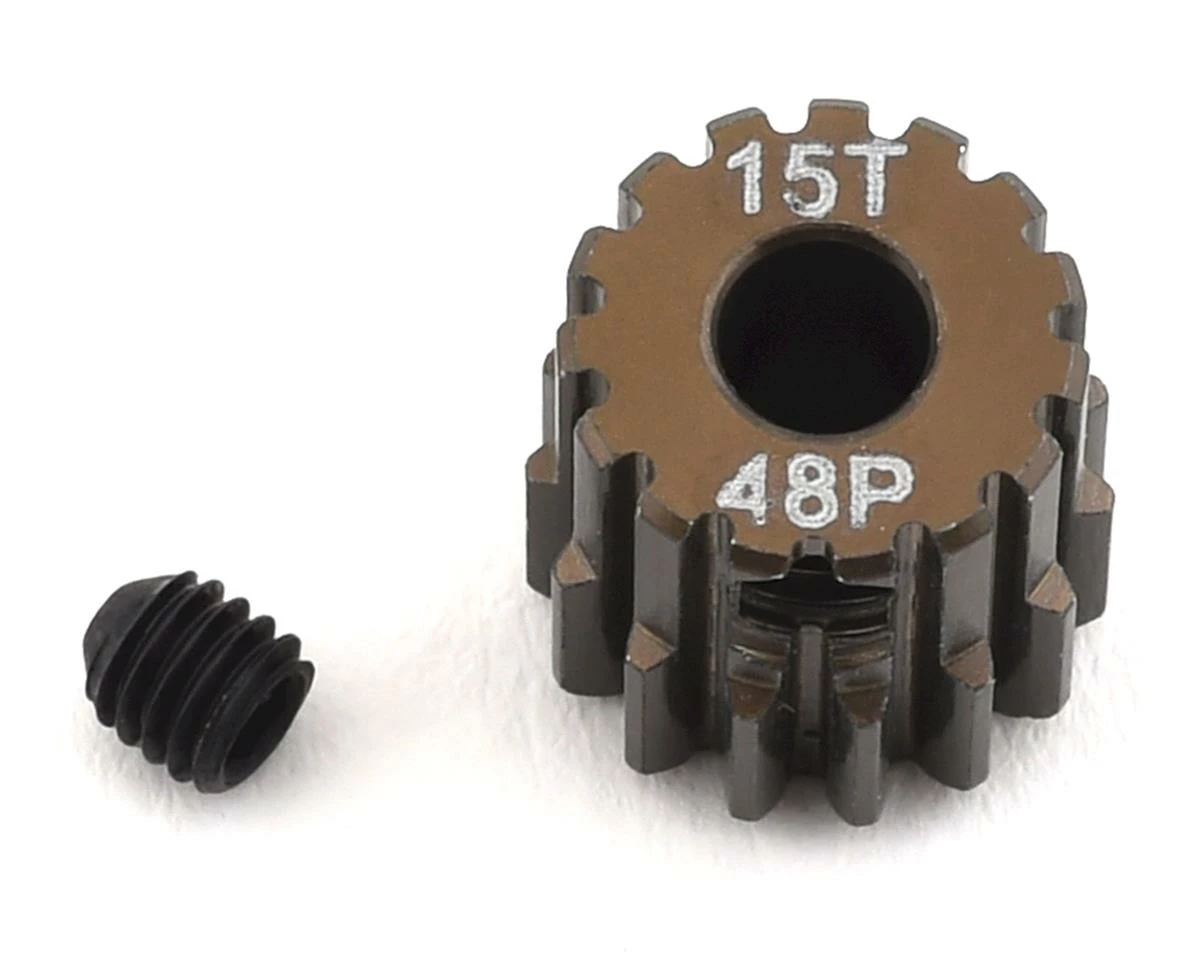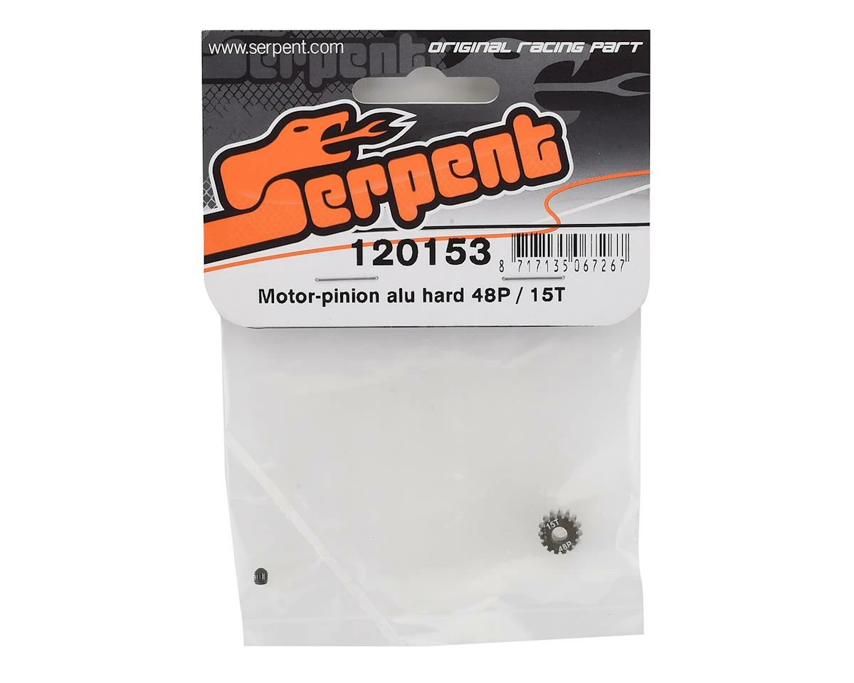 This is an optional Serpent Aluminum 15 Tooth, 48 Pitch Pinion Gear. This pinion gear is for use with most applications needing a 48 Pitch pinion gear.