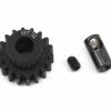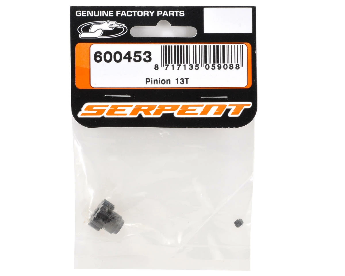 Serpent Steel Mod1 Pinion Gears are available in a variety of tooth count options to fine tune torque and top speed. These gears feature a mod1 tooth profile, a 5mm bore, and are recommended for Serpent 1/8 off road vehicles – but are a good option for a variety of applications. Package includes one pinion gear and one set screw.Â