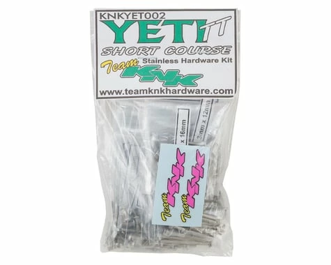 The KNK Axial Yeti TT Stainless Hardware Kit is a must have for any Yeti SCORE Truck owner that refuses to let the elements slow them down. This 338 piece screw kit includes a variety of hardware, packaged by type and length, and labeled to make it easy to identify. This saves you an incredible amount time when searching for the correct size. Plus, unlike other kits on the market, these stainless screws are A2 or 18-8 grade stainless steel, so you are getting the highest quality stainless hardware available.