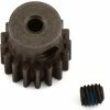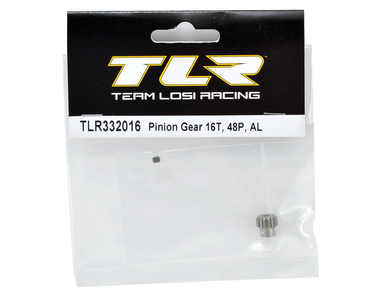 Team Losi Racing Aluminum 48 Pitch Pinion Gear. This gear is the perfect choice for any Team Losi Racing 1/10 scale vehicle that uses 48 pitch gears. This pinion gear has been machined from high quality aluminum, and hardcoated for durability. Choose from multiple tooth count options to fine tune the gear ratio of your vehicle. Package includes one pinion gear and one set screw.