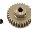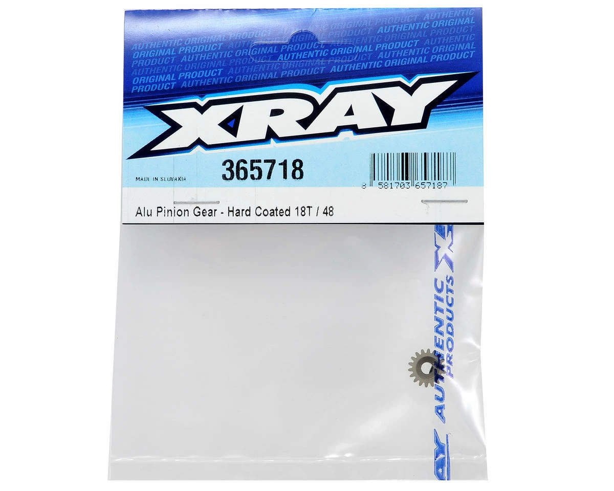 XRAY 48 Pitch Hard Coated Aluminum Pinion Gear. These pinions are manufactured by XRAY on a specially-modified precision gear machine which has ultra-precise tolerances and assures unparalleled concentricity. After machining, the narrow pinions have all their edges chamfered and then are run-in. The pinions are then specially treated to give them an even hardcoat so they stay absolutely true for a long time. The pinions run great with any spur gears, and work perfectly with XRAY spur gears where even throttle on/off noise disappears. You can be confident in using these narrow pinions right from the package, knowing that you are using a pinion of leading-edge design and production.