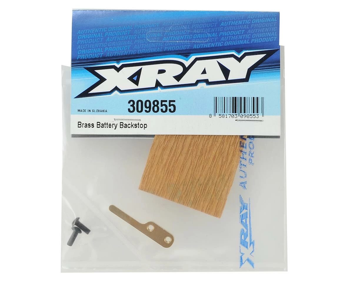 This is an optional XRAY Brass Battery Backstop. The stylish optional CNC-machined battery backstop made from brass material is used as a backstop and works also as an additional weight. Attached by two head screws, it also acts as an inner battery stopper.