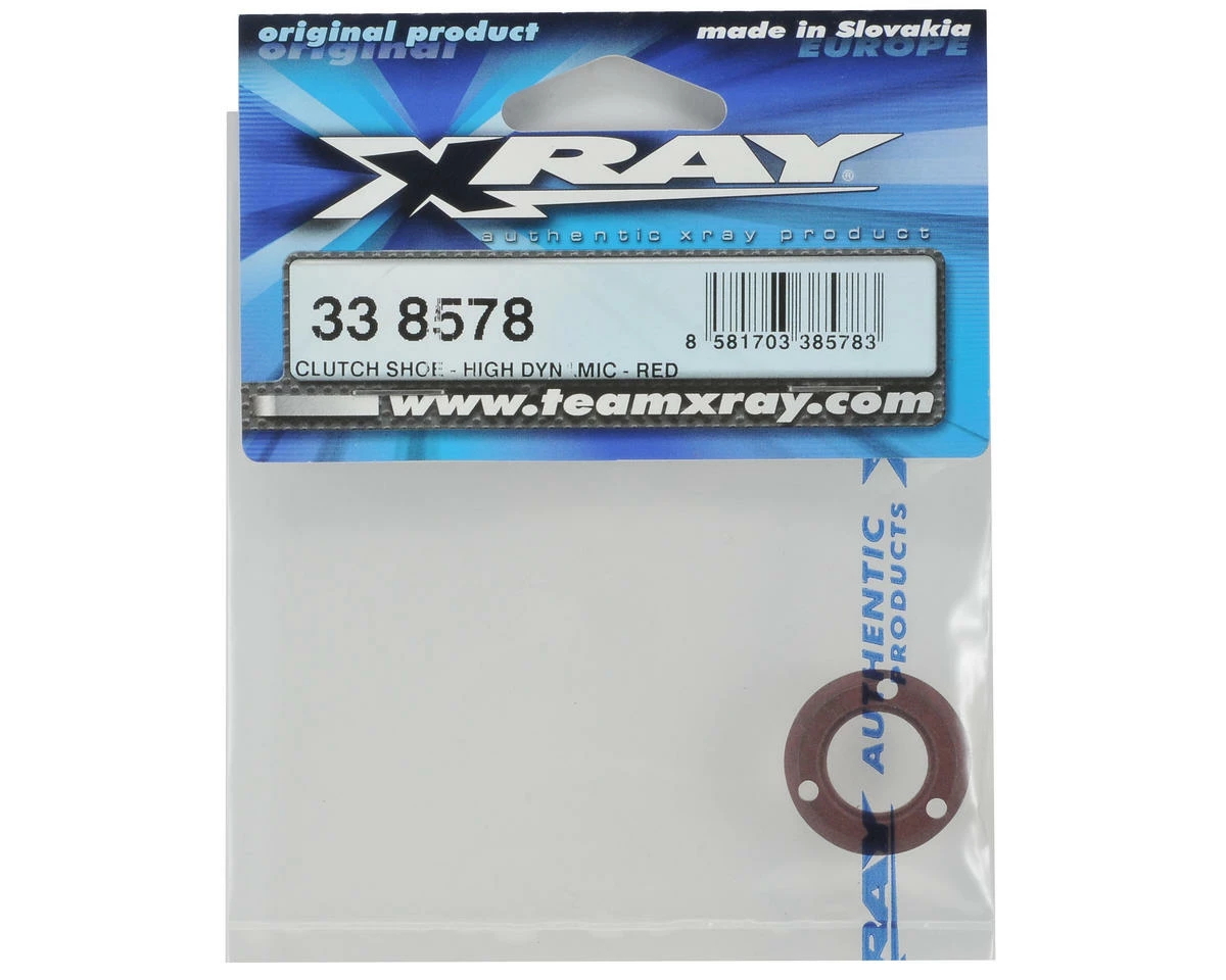 This is an optional XRAY High Dynamic Clutch Shoe, and is intended for use with the XRAY NT1. This high-dynamic Red clutch shoe is recommended for medium and high traction tracks. The High Dynamic XCA Clutch Set has a smaller diameter, and is CNC-machined from hard red clutch material to provide less slippage and reduced wear.