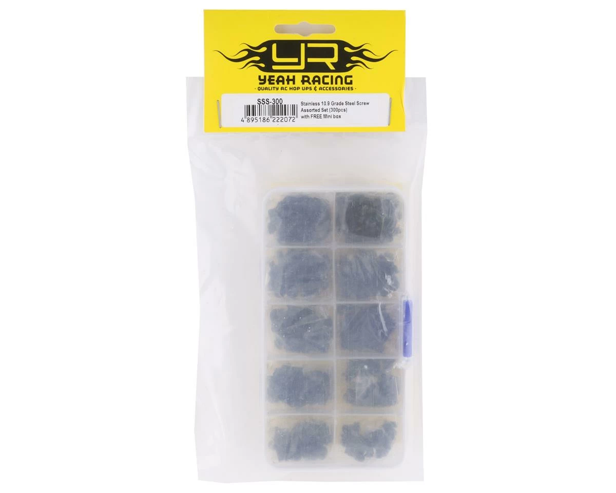 Yeah Racing 3mm Carbon Steel Screw Set with Case. This optional screw set is great for custom builds or to have spares for race day. Package includes three-hundred screws.
