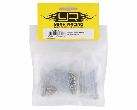 Yeah Racing Axial SCX10 III Stainless Steel Screws Set. This optional screw kit is great for adding rust prevention to the Axial SCX10 III chassis. Made from stainless steel, this screw kit comes complete with all needed hardware. Package includes one complete screw set.
