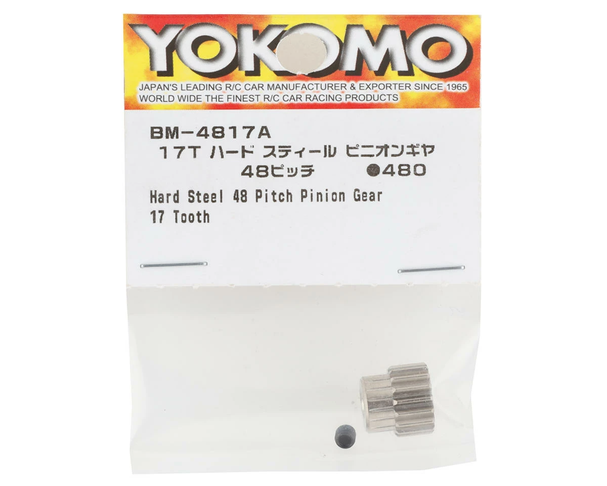 Yokomo 48P Hardened Steel Pinion Gear. These high quality pinion gears offer a precision 48P pinion option. Constructed from hardened steel these gears can handle the extreme power of todays brushless motors and are available in multiple tooth counts. Package includes one pinion gear with set screw.