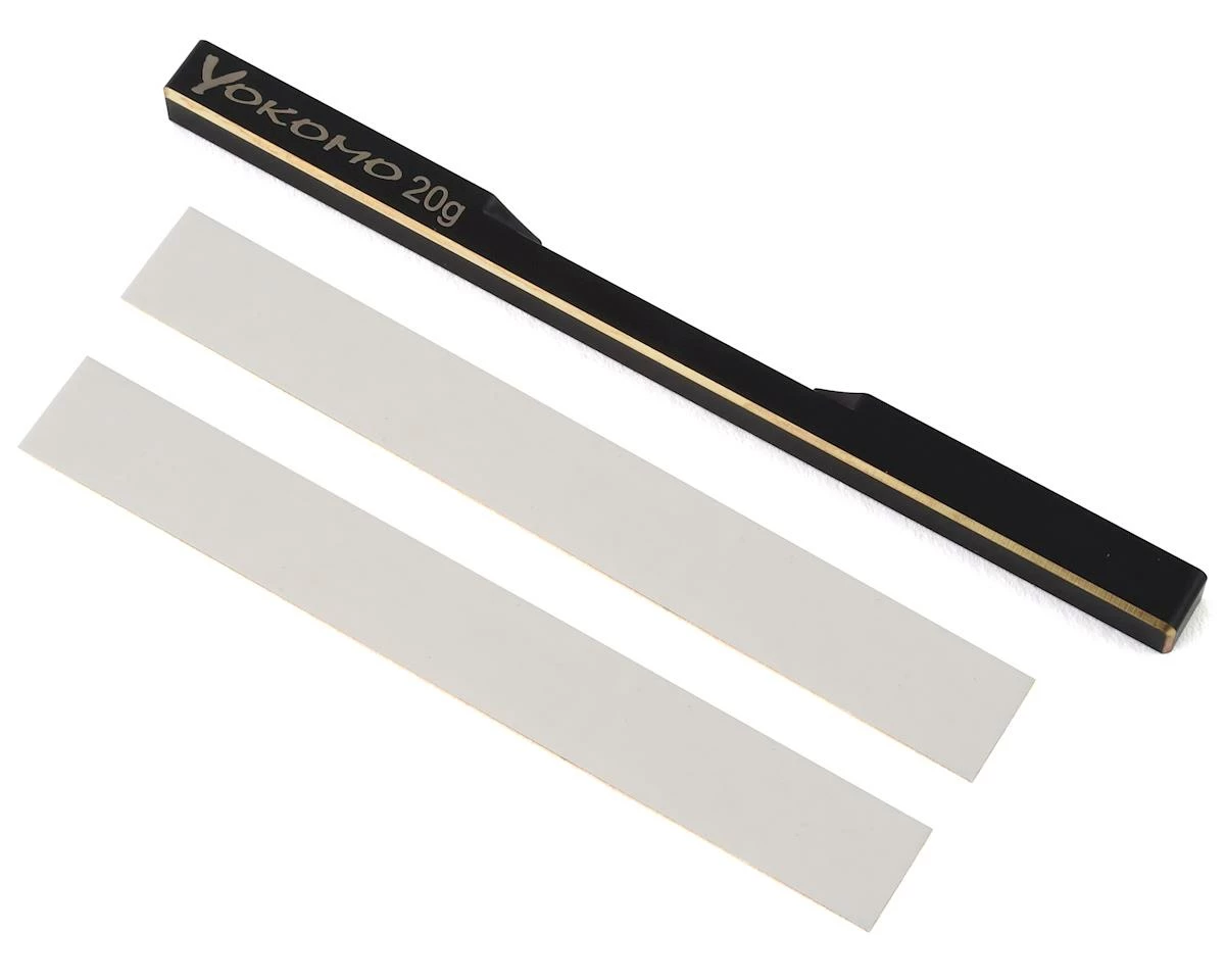BD10 Brass Center Balance Weight. This 20 gram brass center balance weight installs between the motor mount and the battery, allowing weight adjustment without disturbing the overall weight balance of the machine. Package includes one weight, and double-sided tape used for installation.